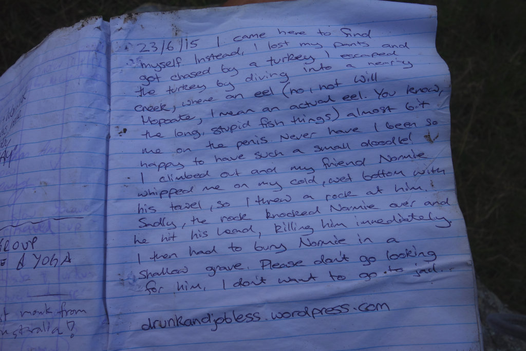 With no job to go to, girlfriend to annoy, or pet to feed to prevent it from dying, this week I went bush for a couple of days. I packed my tent and my sleeping bag and headed up to Mangrove Mountain, west of Gosford, where I found a 24km hiking track that was beautiful, remote and historically significant. Yes, we’re in for some learnin’ here, kids.And don’t worry, I managed to keep my clothes on most of the time.