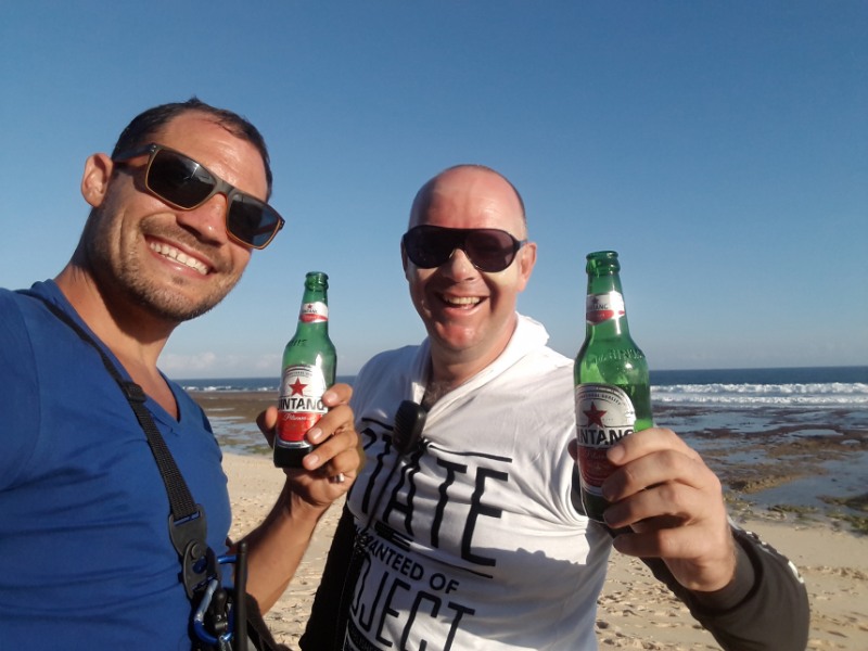 Even though our landing spot was as remote as the chances of Penny Wong taking out the next Miss Universe competition, it’s never hard to get a beer in Bali, so Al and I relaxed with a few Bintangs while Lee kicked back with a cocktail served in a coconut, complete with tiny umbrella and extravagant crazy straw to suck it through. It was a surreal vision in such an out-of-the-way spot.