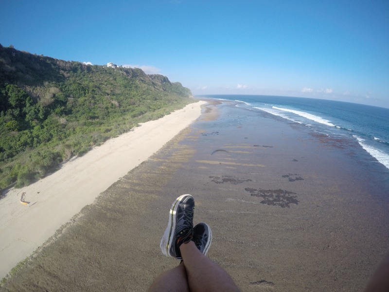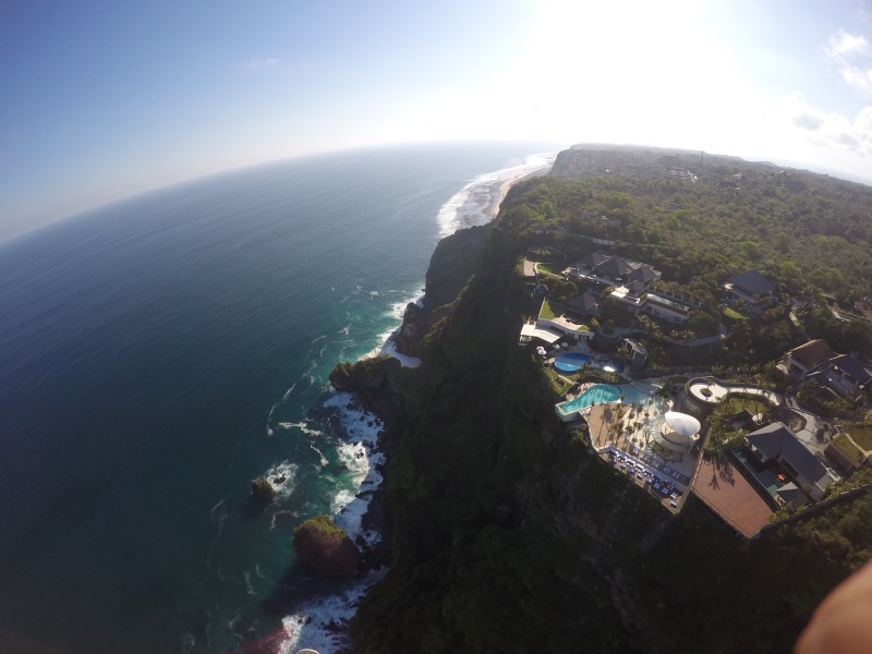 We were cruising around above Pandawa Beach, when the wind shifted south and we realised we could start edging further and further around the bottom of the Balinese coast. Kilometres of rugged and remote beaches lay begging to be explored, and before long we found ourselves cruising through uncharted territory. The height we found was extraordinary, and it was exciting to escape from the restraints of the popular flying sites.